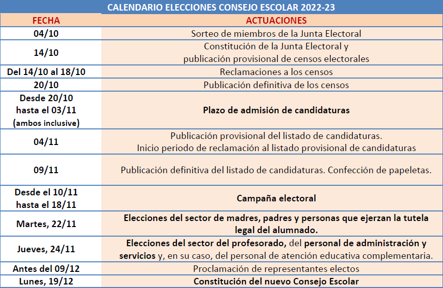 ELECCIONES AL CONSEJO ESCOLAR 2022-23