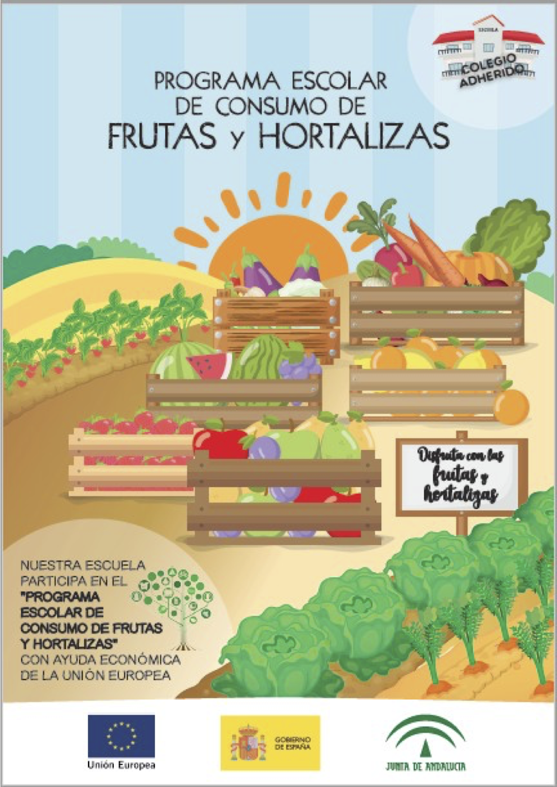 Nuestro centro está adherido al Plan Escolar de Consumo de Frutas y Hortalizas dentro del Programa de Hábitos de Vida Saludable en su modalidad Creciendo en Salud. Una de las líneas de actuación que este programa trata es la promoción entre el alumnado de la ingesta de frutas y hortalizas en el centro, con la intención de que normalicen y se habitúen a su consumo.