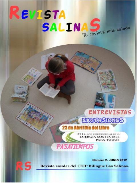 Ya tenemos listo el número dos de la Revista Salinas: con la carta del AMPA y sus secciones habituales de Cartas al director, Nuestro pueblo, Nuevas tecnologías, Hablo más idiomas... Esperamos que el resultado sea de vuestro agrado y que los chicos y chicas sigan preparándo más trabajos para las próxima ediciones.